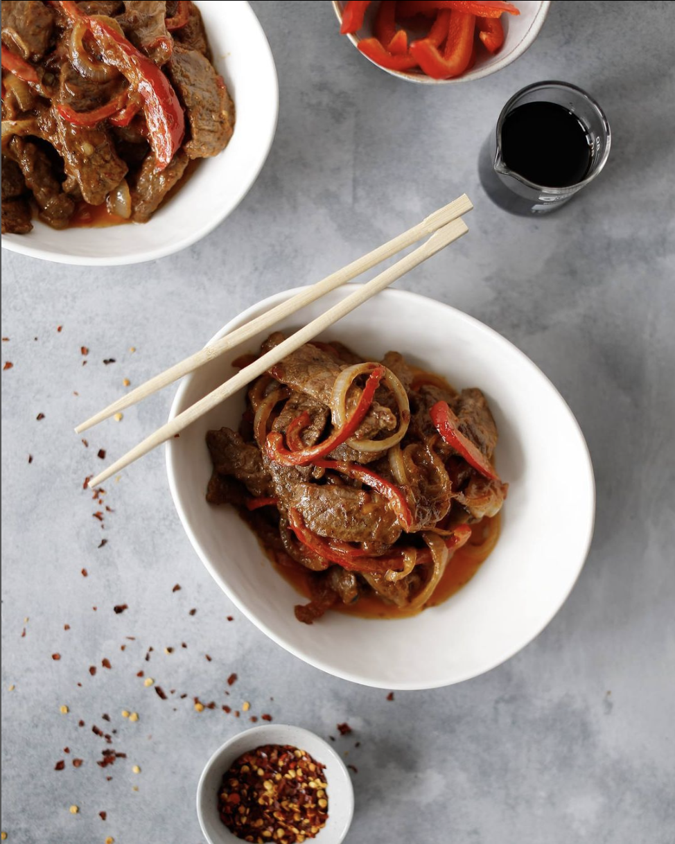 - Combine the peanut butter, coconut cream, sweet chilli sauce and soy sauce in the wok/pan on a medium heat and bring to a boil before re-adding the beef strips and onion and capsicum to the mixture. Coat everything evenly and remove from the heat.